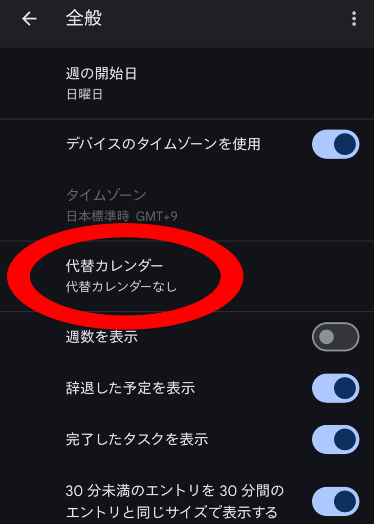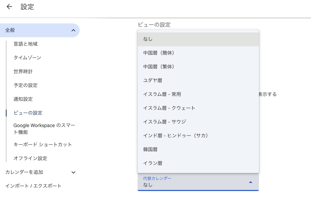 Googleカレンダーには「代替カレンダー」という機能があり、