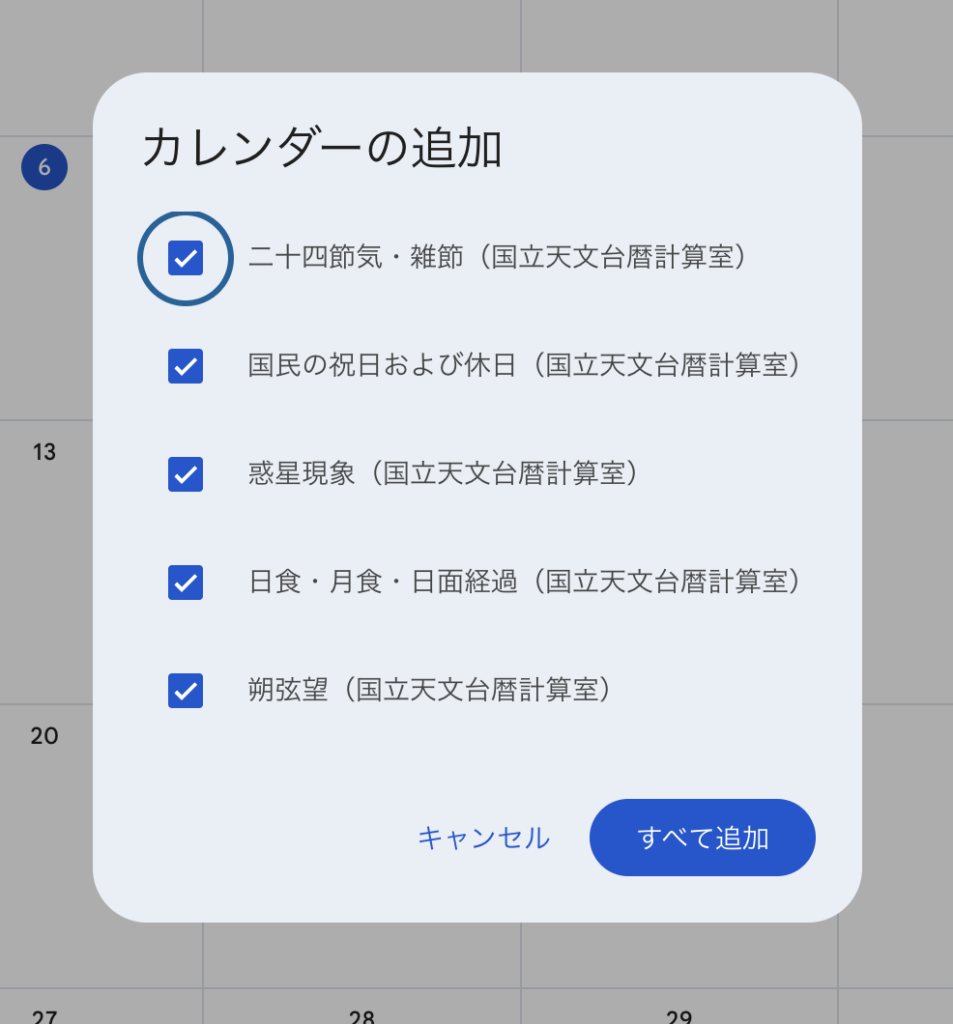 追加したいカレンダーを選択して、自分のカレンダーに追加📅